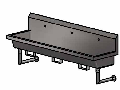 72″ Wall Mount Three Station Handwash Sink, Single Hole Splash Mount, Bracket for Knee Valve, 14 ga T-304 S/S Sink, 18 ga S/S Legs/Supports, T-304 Basket Drain Included, NSF, 3-5 Day Lead TimeSpec Sheet