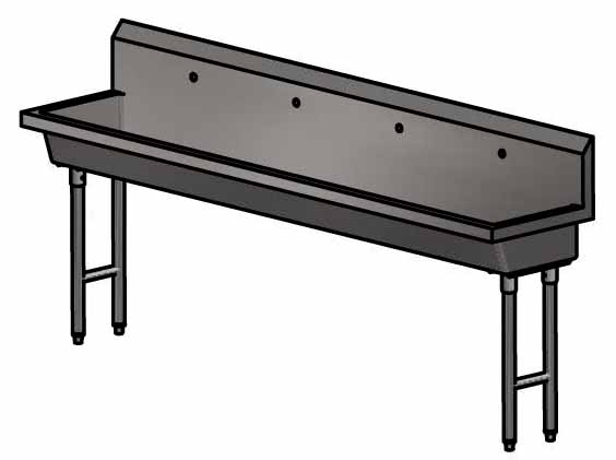 96″ Freestanding Four Station Handwash Sink, Single Hole Splash Mount, 14 ga T-304 S/S Sink, 18 ga S/S Legs/Supports, T-304 Basket Drain Included, NSF, 3-5 Day Lead Time