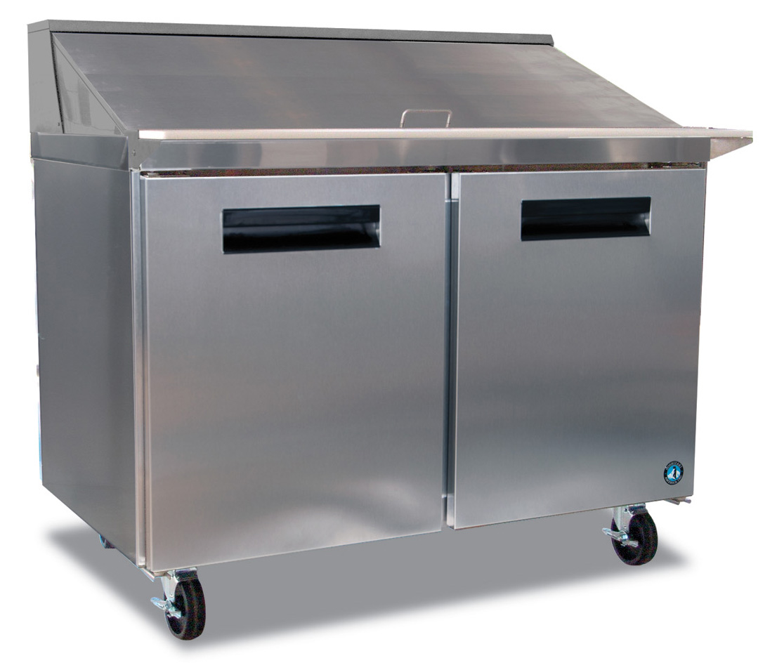 The CRMR48-18M is constructed of stainless steel, which protects this unit from accidental damage and rust. Plus, it is easy to clean. The CRMR48-18M Includes 2 epoxy coated shelves and 18 polycarbonate plastic 1/6th size pans, 4″ deep, it features Spring assisted self closing door, with stay open feature (field reversible without kit). Full length, 10″ deep, 1/2″ thick white polyethylene cutting board is standard. The unit is ISO 9001:14001, ETL Sanitation Listed, cETLus Listed, Manufactured in the USA and includes a Five Years compressor warranty / Three Years parts and labor warranty.